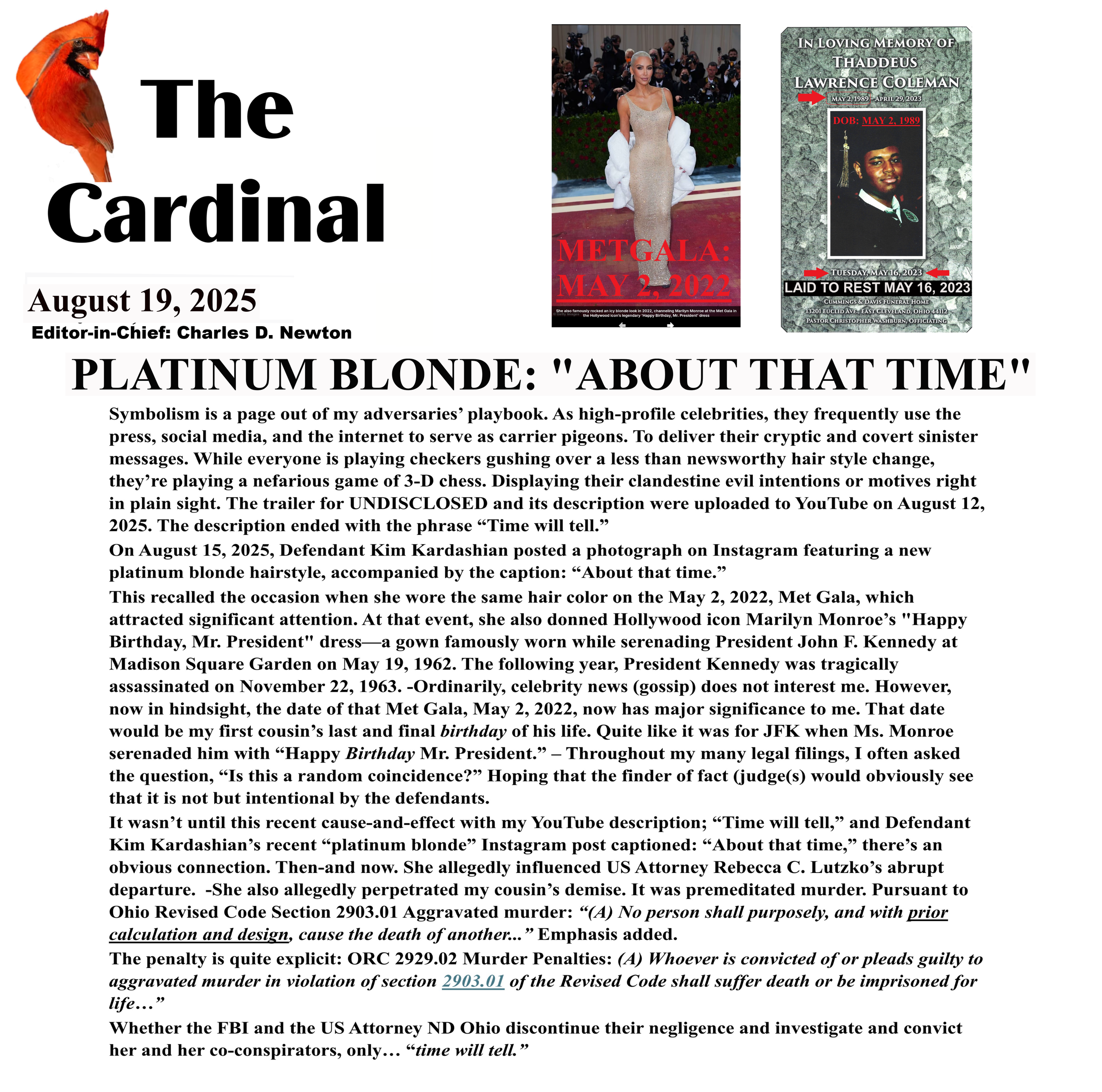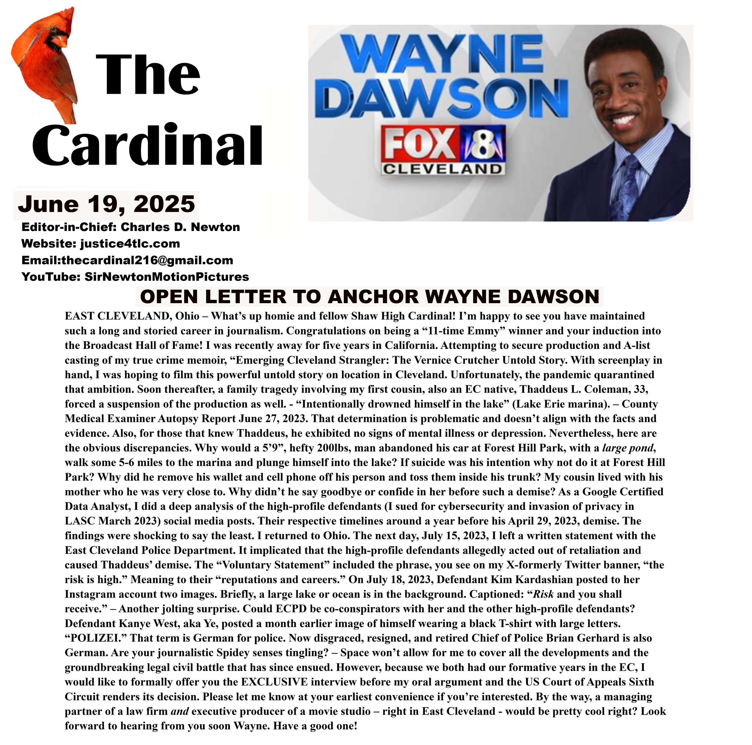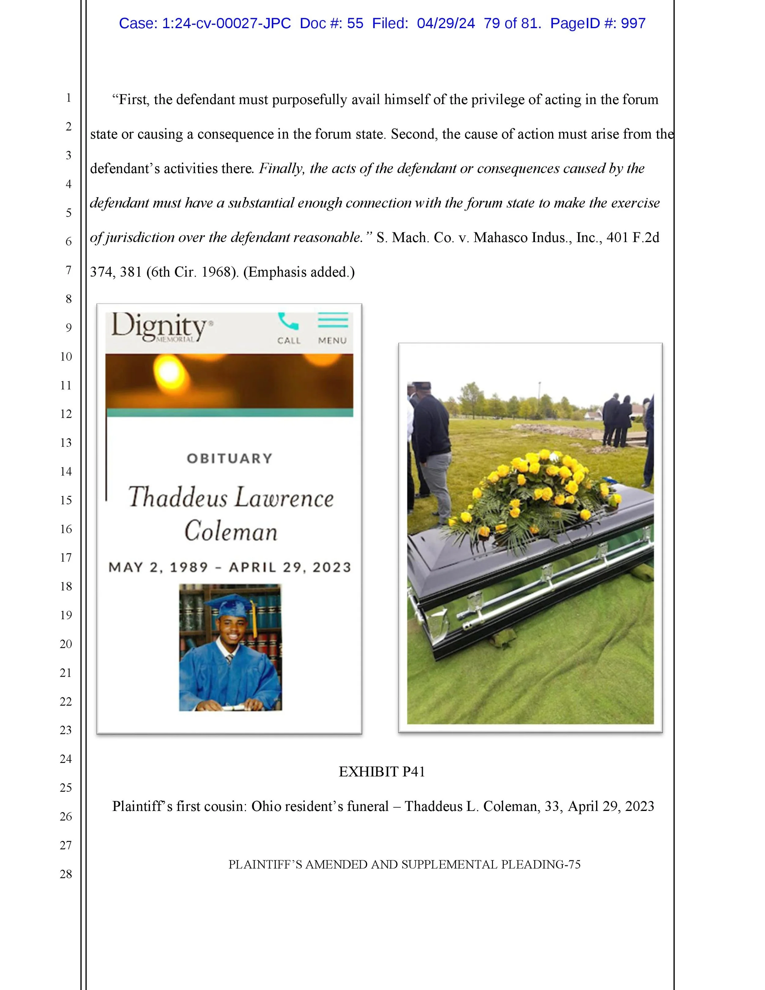 Two objectives are to achieve justice for my first cousin, Thaddeus L. Coleman, and to resume the case in our hometown of Cleveland, Ohio.