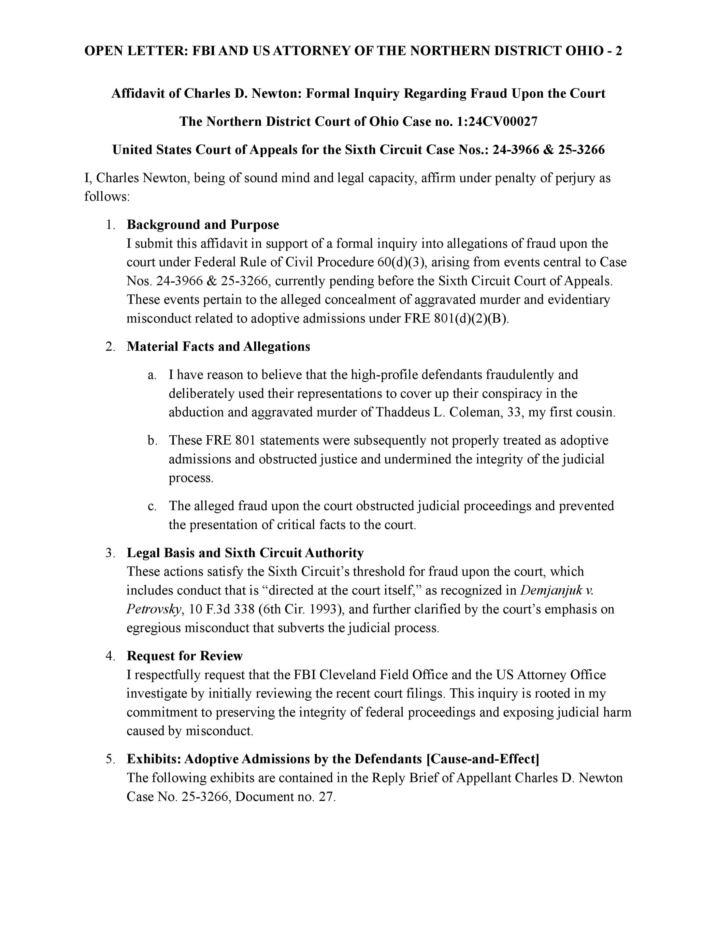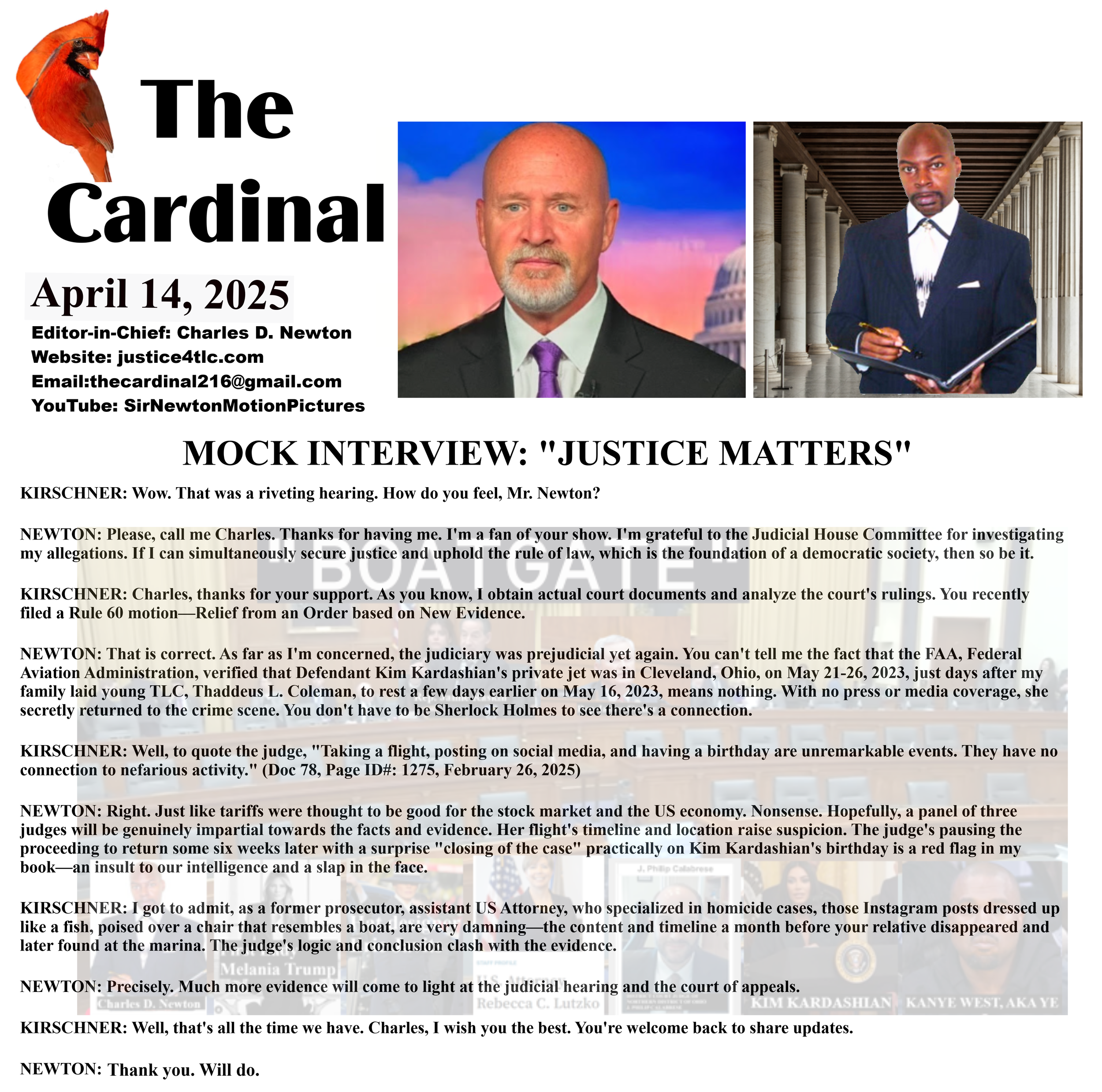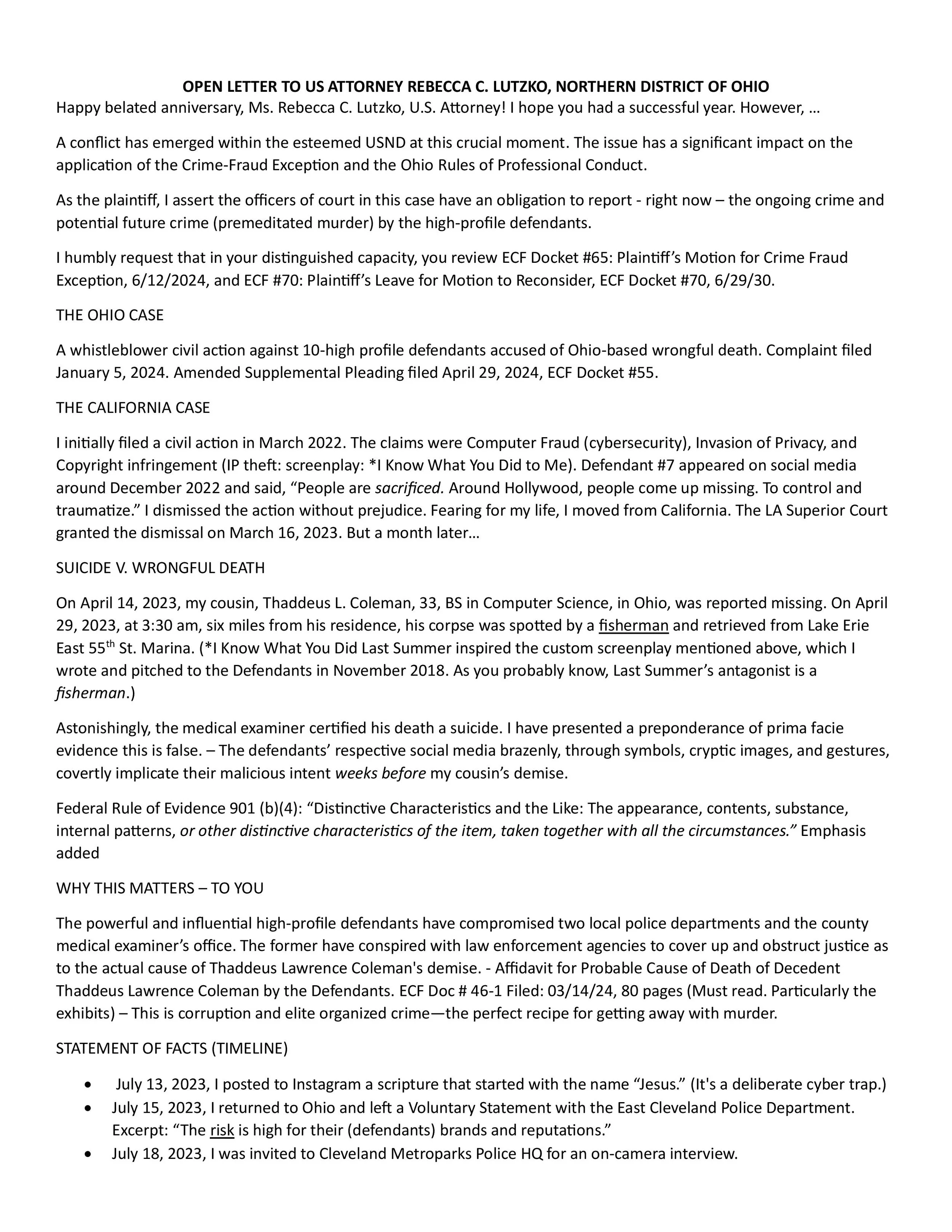 Two objectives are to achieve justice for my first cousin, Thaddeus L. Coleman, and to resume the case in our hometown of Cleveland, Ohio.