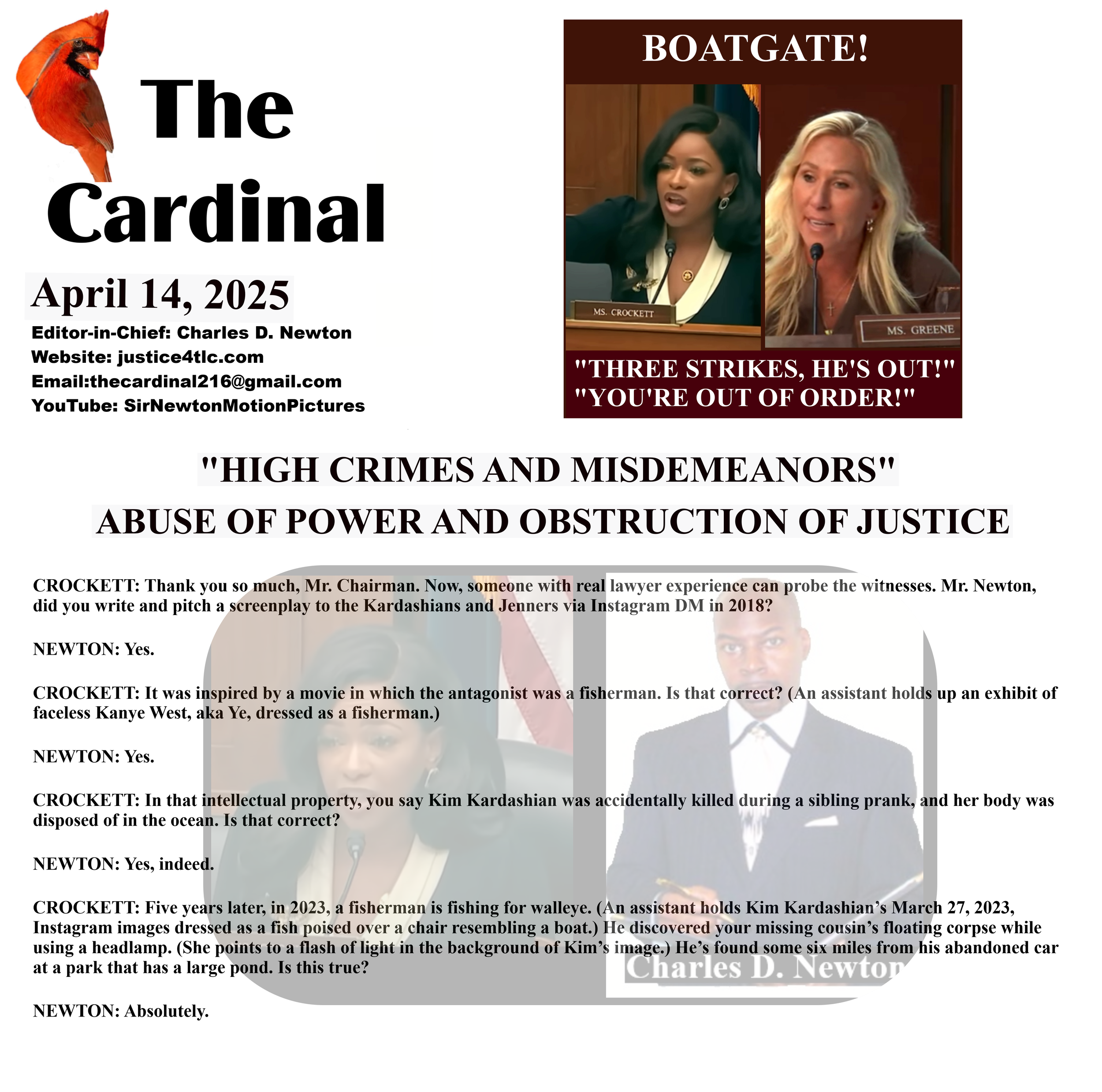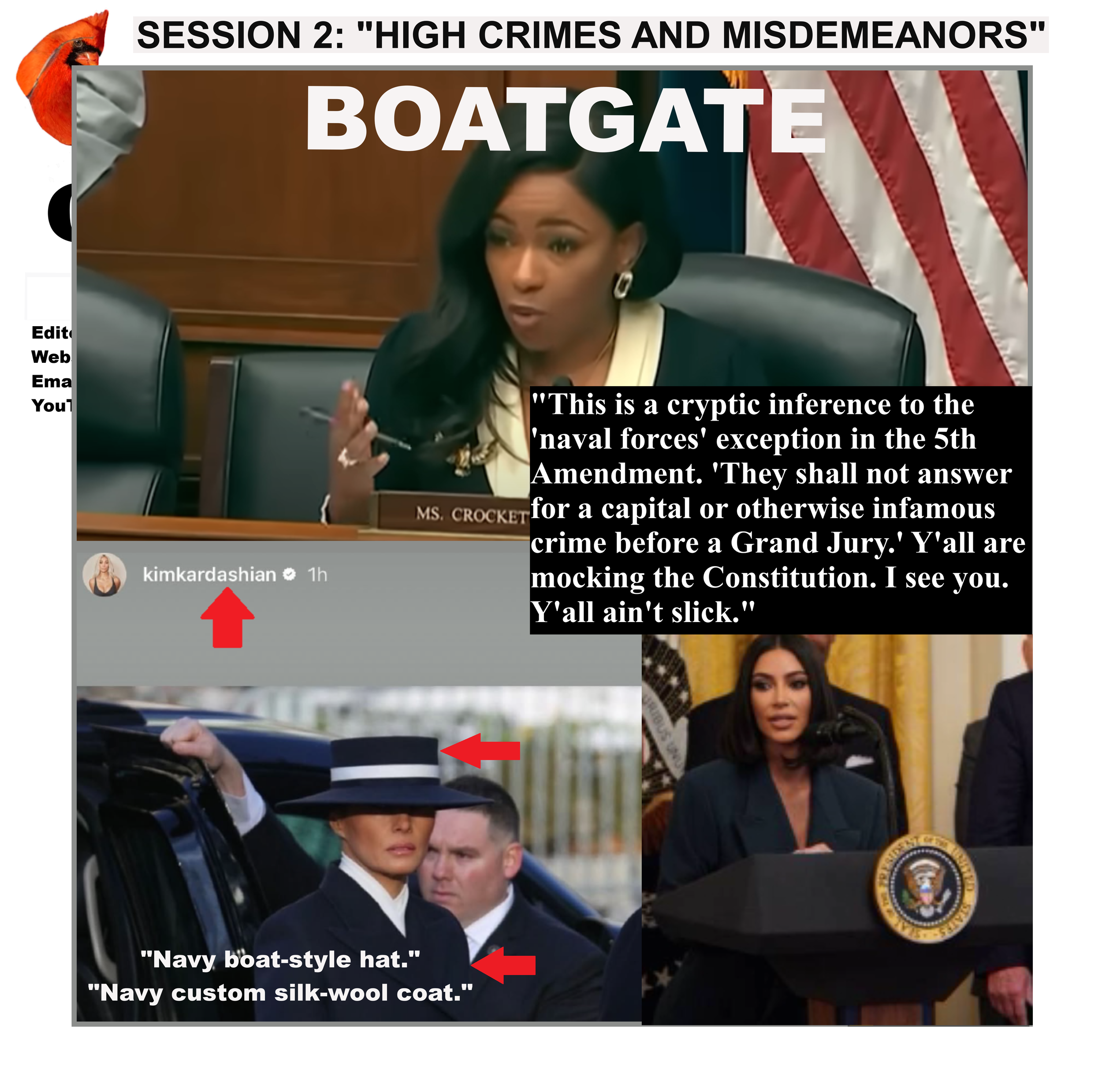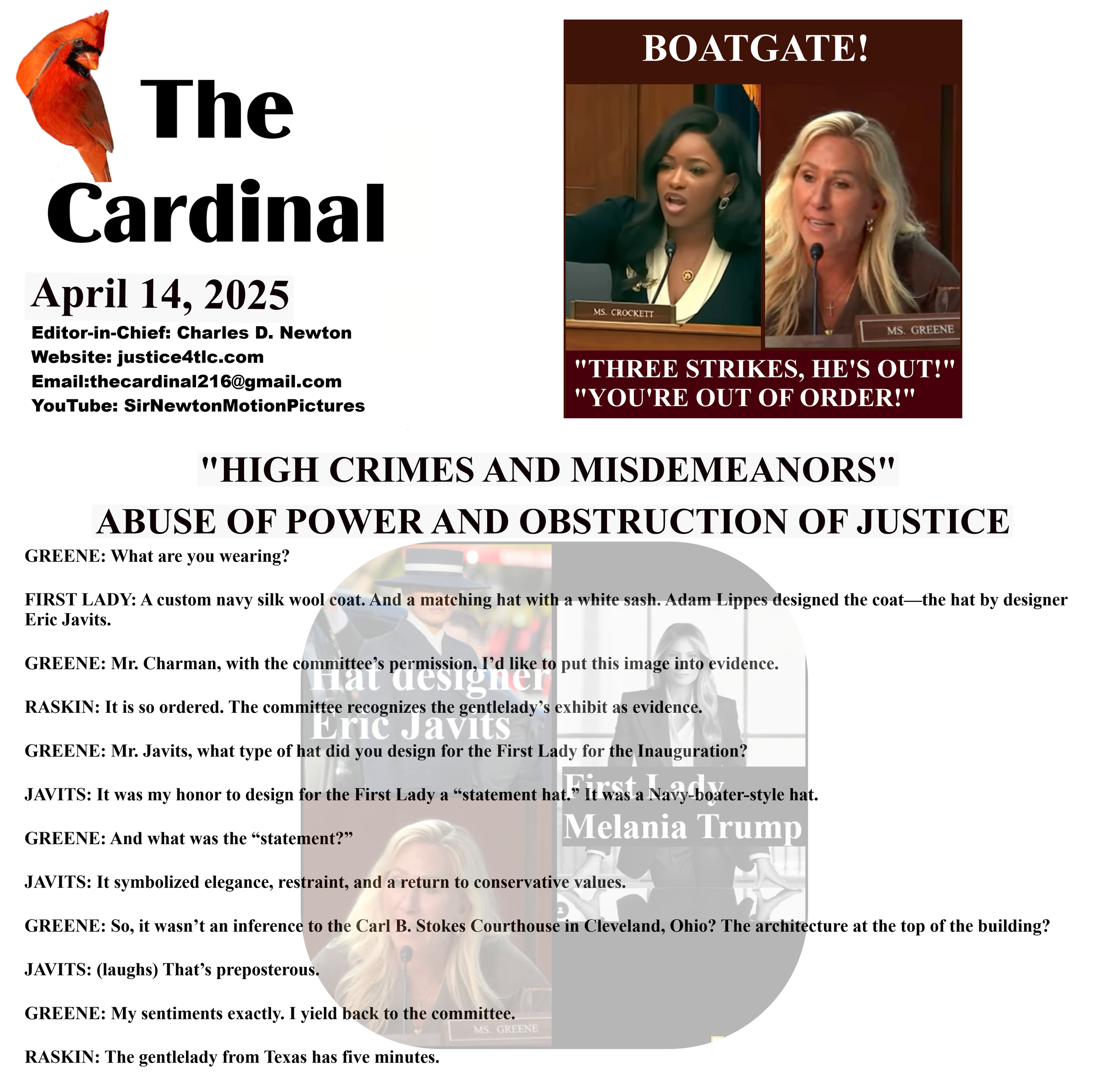 [See X (Formerly Twitter) for weekly Mock Judicial Hearings on “High Crimes and Misdemeanors.” Allegedly, the defendants have used the presidency to abuse its power and obstruct justice.]