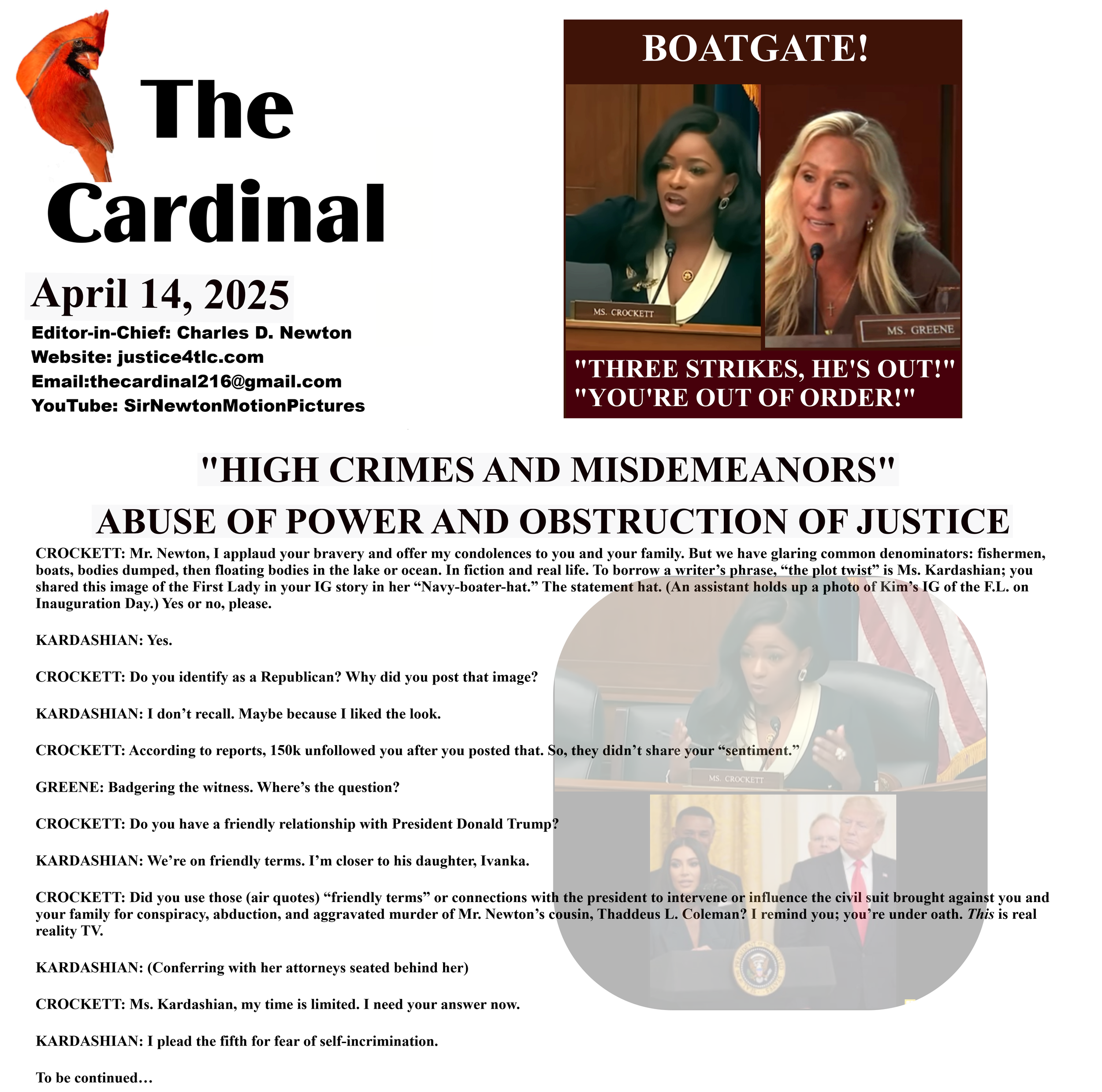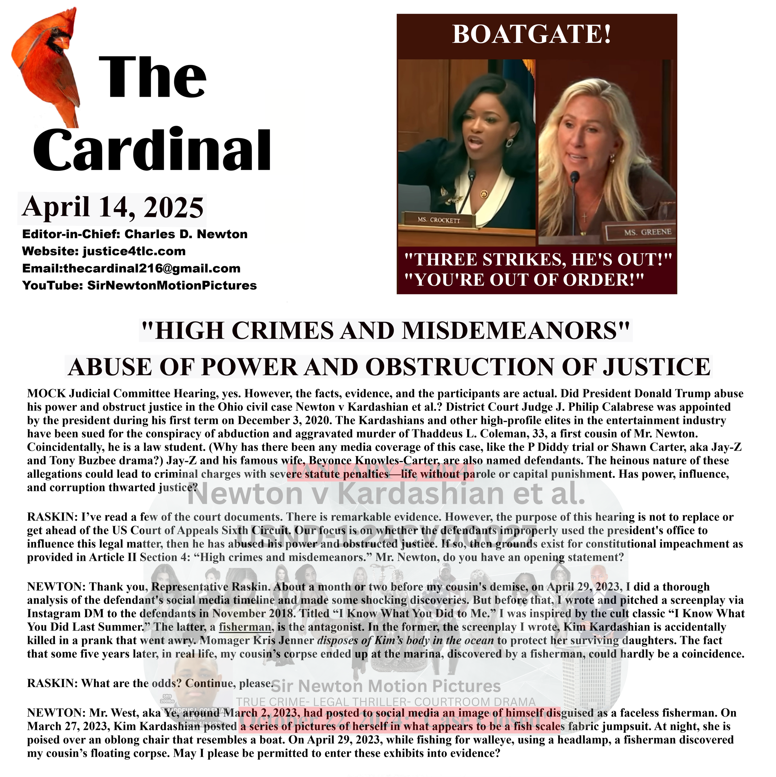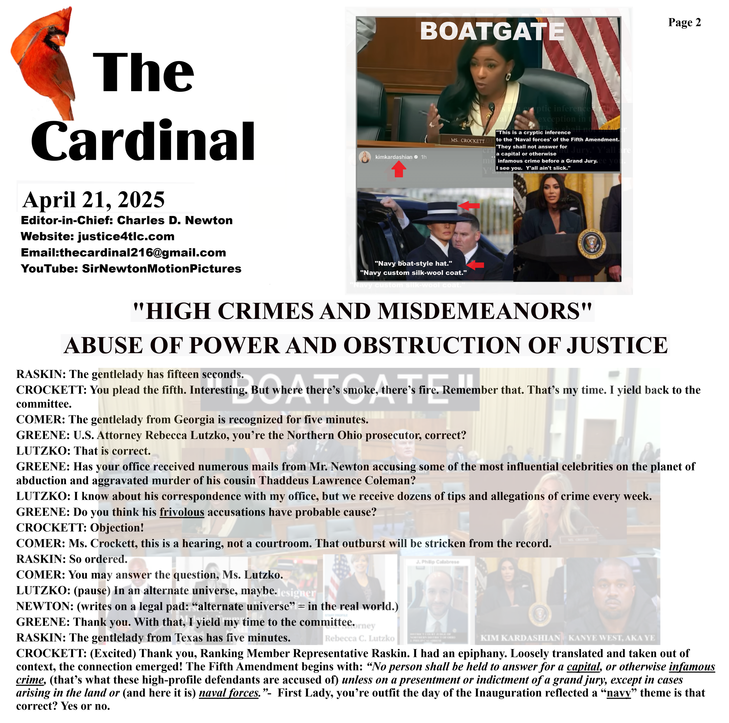 [See X (Formerly Twitter) for weekly Mock Judicial Hearings on “High Crimes and Misdemeanors.” Allegedly, the defendants have used the presidency to abuse its power and obstruct justice.]