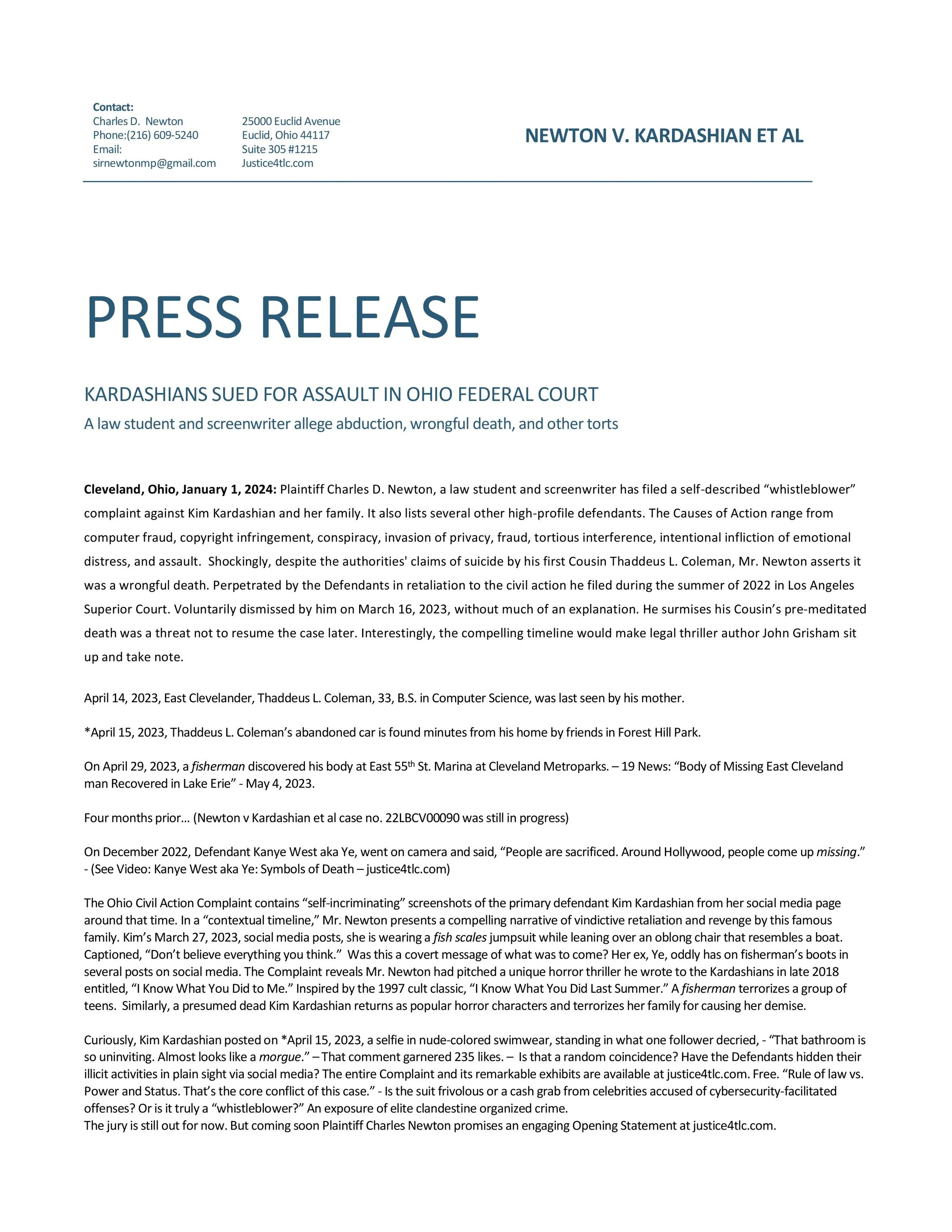 In March of 2022, I filed a civil action in Los Angeles Superior Court against Kim Kardashian and other high-profile celebrities for cybersecurity, invasion of privacy, and copyright infringement (IP Theft), case number 22LBCV00090.