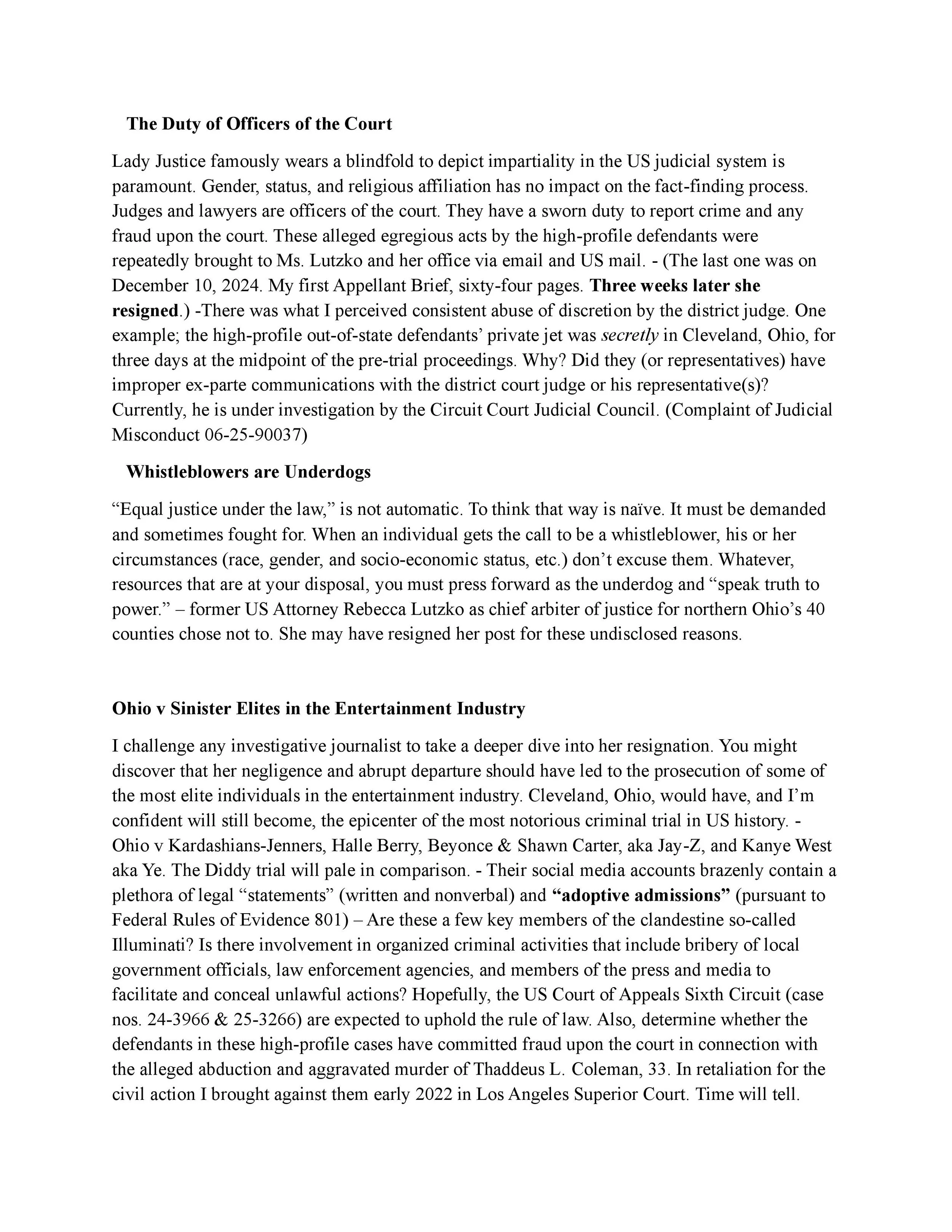 Unfortunately, I filed for "Dismiss Without Prejudice" on December 12, 2022. Shortly before I saw (early December) Defendant Kanye West, aka Ye’s cryptic statement to Paparazzi: “Around Hollywood, a lot of people come up missing. To control and traumatize.”